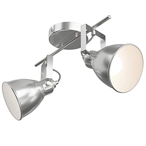 BAKAJI Lustre lampe murale au plafond avec spot douille directionnable structure en métal argenté design moderne industriel culot E14 ampoule max 25 W éclairage maison (2 lumières)