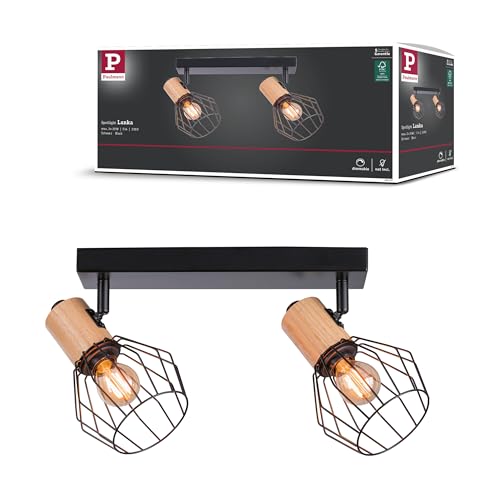 Paulmann 66767 projecteur Lanke 2 flammes max. 2x20 watts plafonnier noir/bois spot métal E14