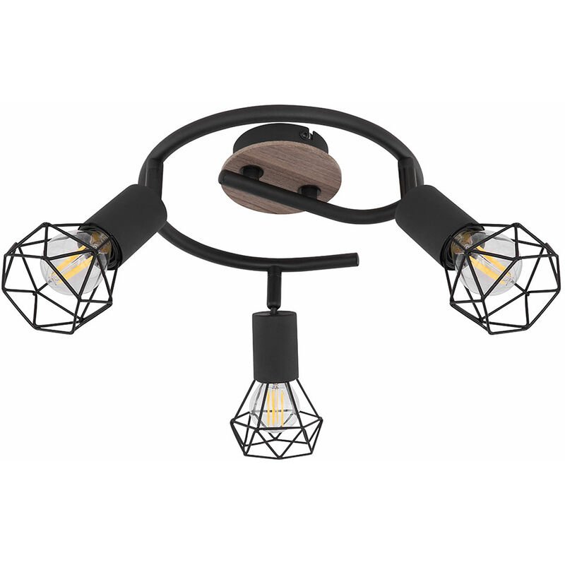Etc-shop - Plafonnier spot Rondell bois lampe de salon industriel Rondell plafonnier 3 flammes à régler, grille métal noir, 3x douilles E14, DxH