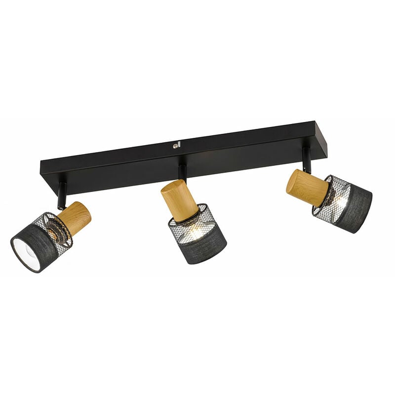 Etc-shop - Plafonnier plafonnier spot lampe en bois lampe en bois, spots mobiles 3 ampoules, métal noir bois naturel, douilles E27, DxH 28x17,5cm