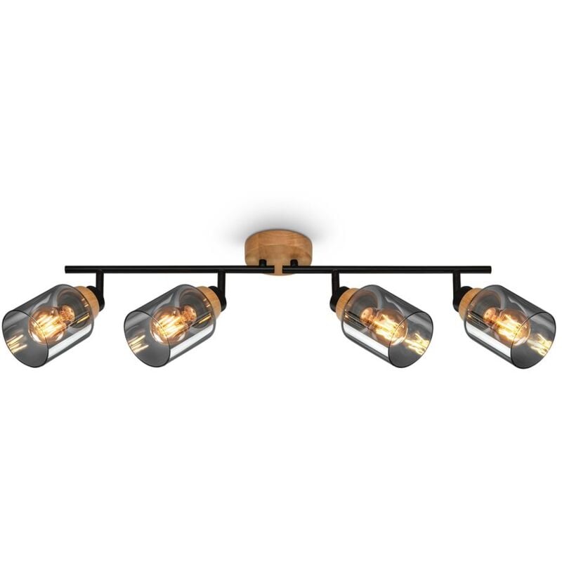 ZMH - gbly Plafonnier Spot 4 Flammes Noir : Plafonnier Vintage Pivotant 350° MAX.25W Douille E14 Spot Bois Industriel Barre pour Salon Chambre Bureau