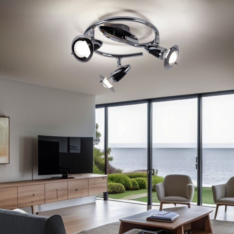 Globo Lighting - Plafonnier Plafonnier 4 flammes spot orientable aspect bois noir avec spots orientables, métal noir, 4x douilles GU10, LxlxH