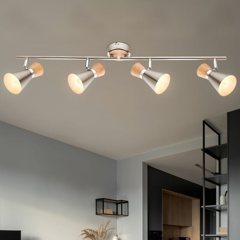 Plafonnier Spot de plafond -4 flamme Lampe de plafond couloir moderne en bois Spot mural orientable 350° E14 MAX.25W lampe pour salon chambre cuisine