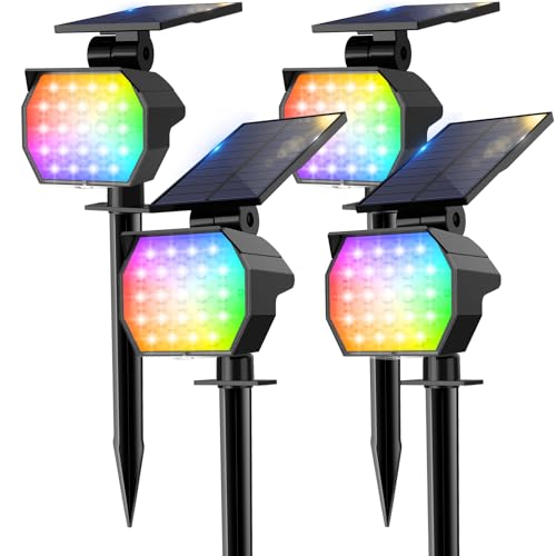 Adewalk Lot de 4 RGB Spot Solaire Extérieur, 2 en 1 Lampe Solaire Jardin 6 Couleurs Fixes/1 Mode de Cycle, Etanche IP65, Projecteur Solaire Extérieur pour Chemins Pelouse Terrasse Allée Cour Porche