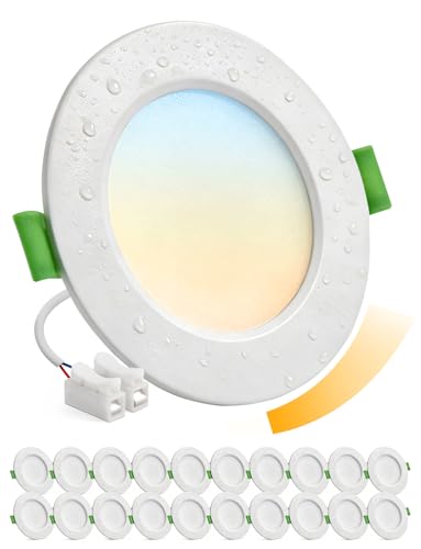 Tomosu Lot de 20 5CCT Spot Led Encastrable 68mm, 5W 550LM Spot Extra Plat IP44 Spots Encastrés Salle de Bain, 220V Spots de Plafond Blanc Chaud Blanc Neutre Blanc Froid, Trou Ø68-80mm, Non Dimmable