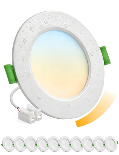 Tomosu Lot de 12 5CCT Spot Led Encastrable 68mm, 5W 550LM Spot Extra Plat IP44 Spots Encastrés Salle de Bain, 220V Spots de Plafond Blanc Chaud Blanc Neutre Blanc Froid, Trou Ø68-80mm, Non Dimmable