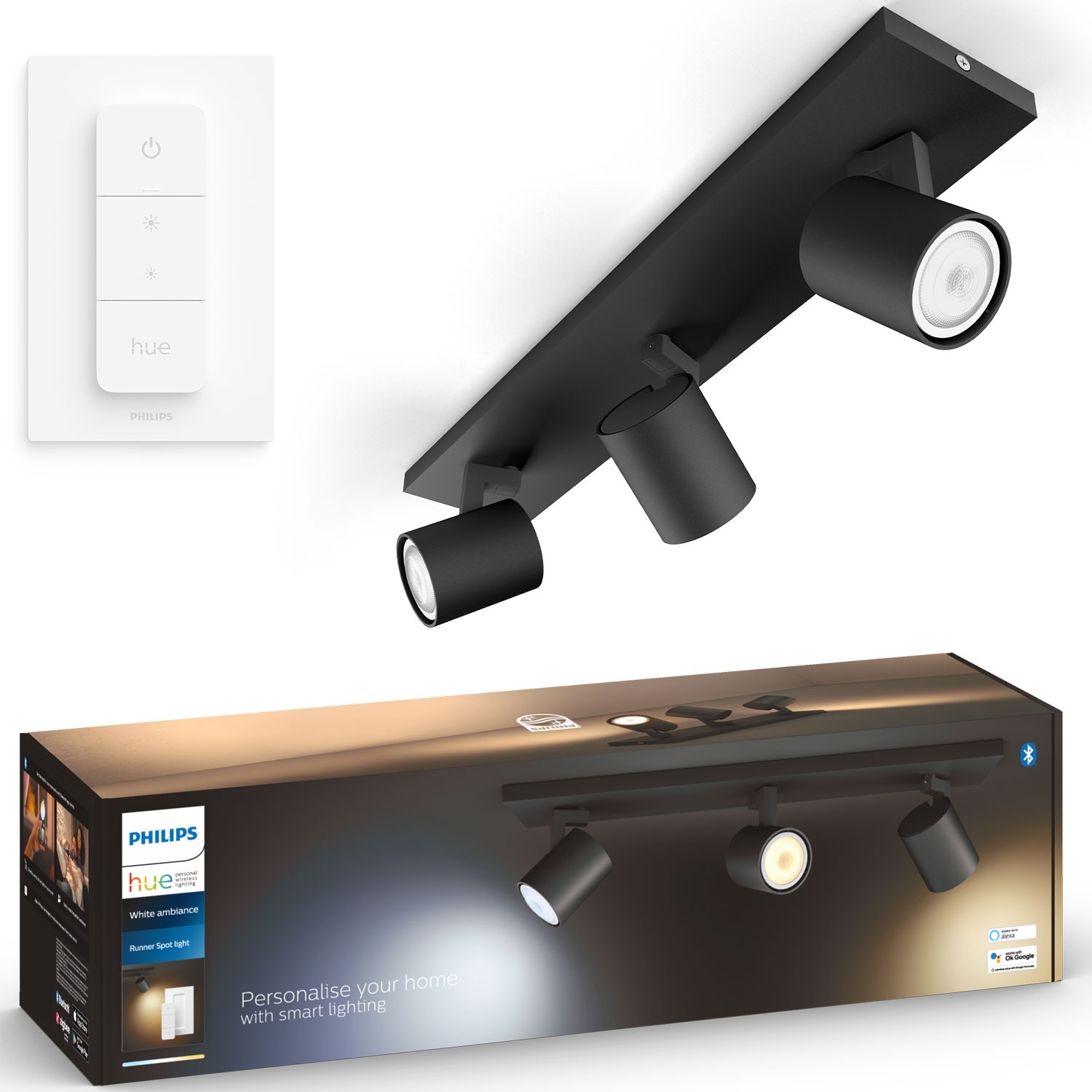 Philips Hue White Ambiance Runner Spot 3 x 5 W GU10 télécommande incluse, Dimmable, contrôlable via App, Compatible avec Amazon Alexa (Echo, Echo Dot)