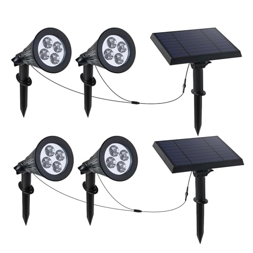 Lumisky Lot de 2 double spot solaire relié avec panneau solaire déporté 2 en 1 à piquer ou à fixer éclairage puissant LED blanc dimmable FAMILY SPIKY H38cm