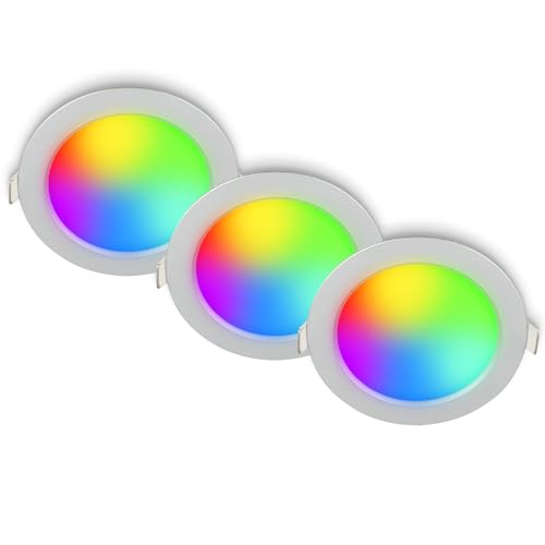 BRILONER - Set de 3 spots LED encastrables 230V avec télécommande, dimmable, RGB, CCT blanc cassé à froid, spot encastrable, spots plafond, 12x4 cm, blanc