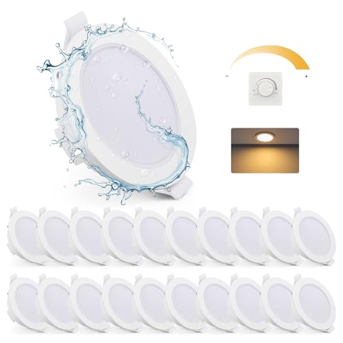 Gr4tec Spot LED Encastrable IP65 Salle de Bain, 20 LED Dimmable Blanc Chaud 2700K 6W 400LM, Extra Plat 35mm, Trou 68-80mm pour Cuisine Chambre Salon