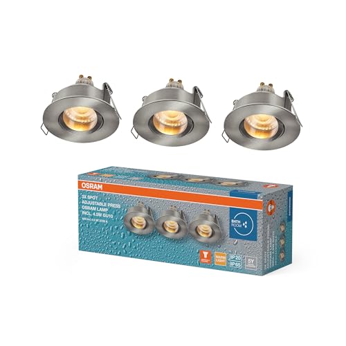 Spot Set Spot LED encastrable IP65 Press 4,5 W nickel satiné, 320 lm 2700 K blanc chaud, IRC ≥ 80, pièce humide, lot de 3