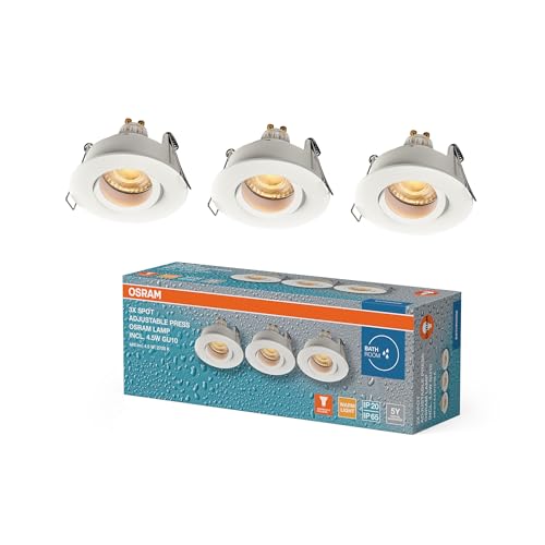 Osram Spot Set Spot LED encastrable IP65 Press 4,5 W Blanc, 320 lm 2700 K Blanc chaud, IRC ≥ 80, convient aux pièces humides, lot de 3