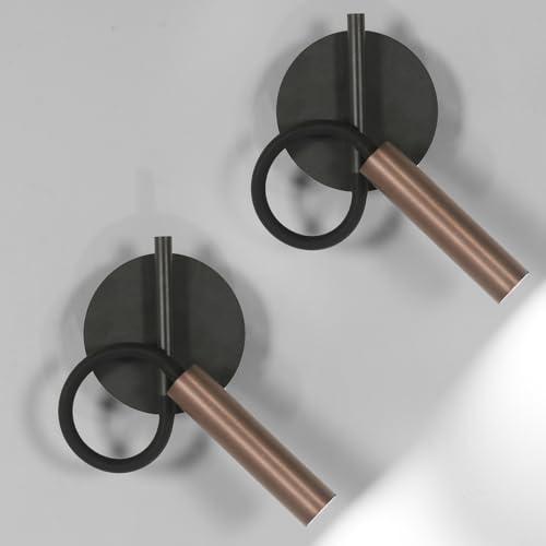 IDEGU Lot de 2 Retro Applique Murale Industrielle en Bois et Métal Lampe Murale Vintage Réglable en Bois Métal Spot LED pour Salon