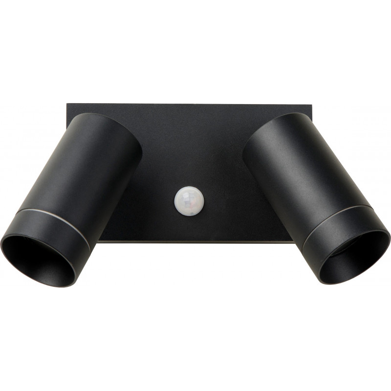 LUCIDE ZARO - Spot mural/Applique mural Intérieur/Extérieur - 2xGU10 - IP65- Détecteur De Mouvement & Jour/Nuit (désactivable) - Noir