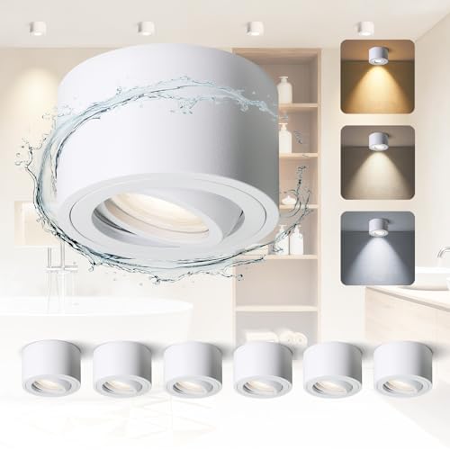 mega lumen Plafonnier Spot Salle de Bain IP65 Saillie 5W 520lm 3CCT Spot LED Plafond Aluminium Orientable Ø80x50mm Module Plafonnier LED for Cuisine Couloir Blanc 230V IRC90+