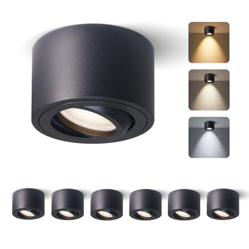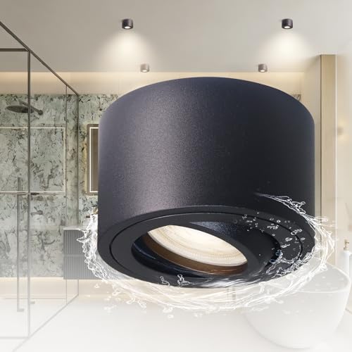 Mega lumen Plafonnier Spot Salle de Bain IP65 Saillie 5W 520lm 3CCT Spot LED Plafond Aluminium Orientable Ø80x50mm Module Plafonnier LED for Cuisine Couloir Noir 230V IRC90+
