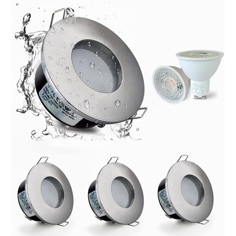 Spot LED encastrable pour pièces humides, cabine de douche, salle de bain turc IP65, chrome brillant