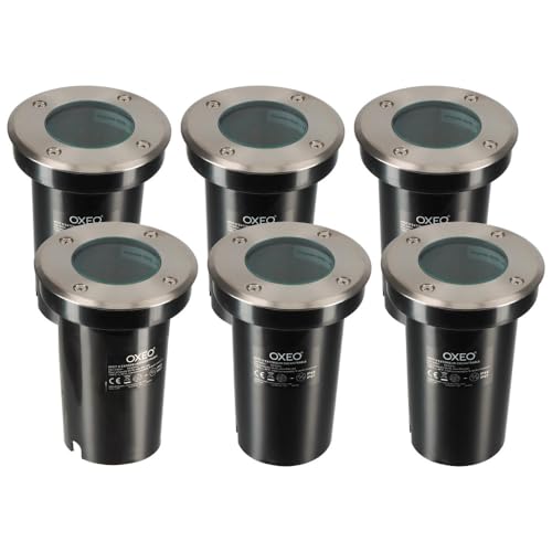 Oxeo Spots encastrables X6 - Extérieur - Couvercle inox - Pour Ampoule LED GU10 - Etanche IP67 - Spot terrasse - Éclairage jardin