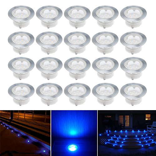 CHNXU Spot Encastrable LED pour Terrasse,Spot Encastré en DC12V IP67 Etanche Ø60mm Acier Inoxydable Exterieur luminaire,Eclairage pour Jardin,Couloir (bleu, 20 kit)