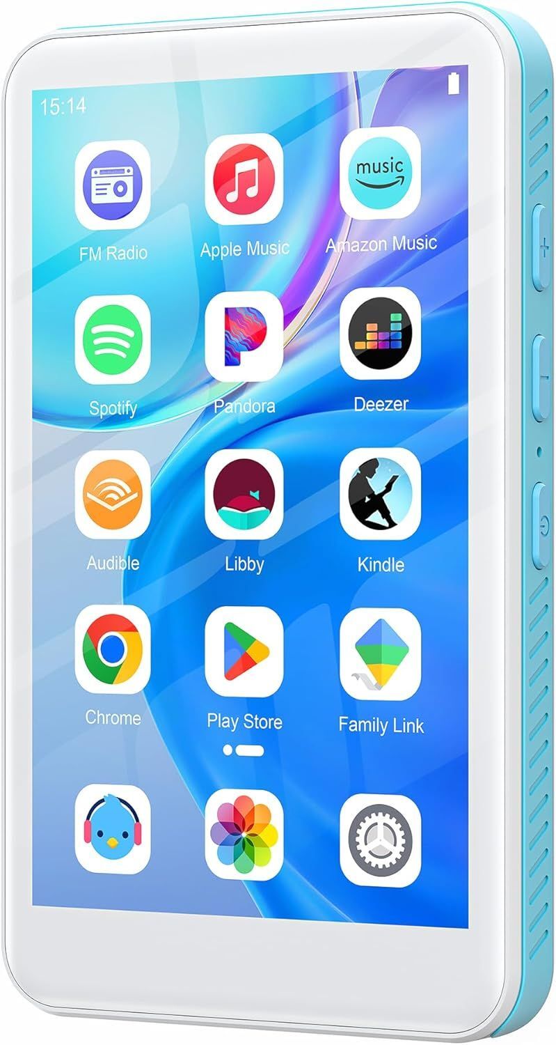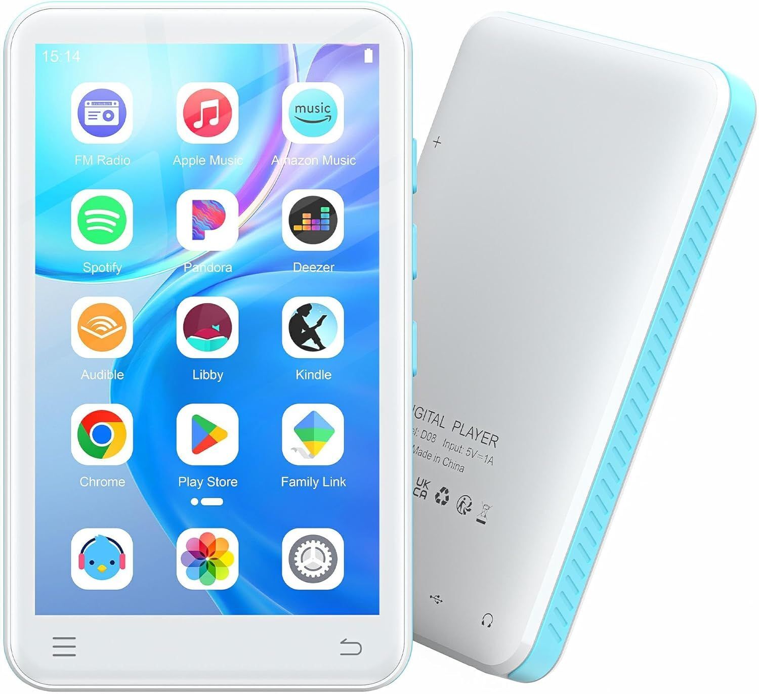 Lecteur MP3 80 Go avec Bluetooth et WiFi, écran Tactile 4 Pouces Lecteur MP3 pour Enfants Haut-Parleur intégré, Lecteur MP4 avec Spotify, Audible, Amazon Music, Deezer, Pandora, Radio FM, jusqu'à 1To