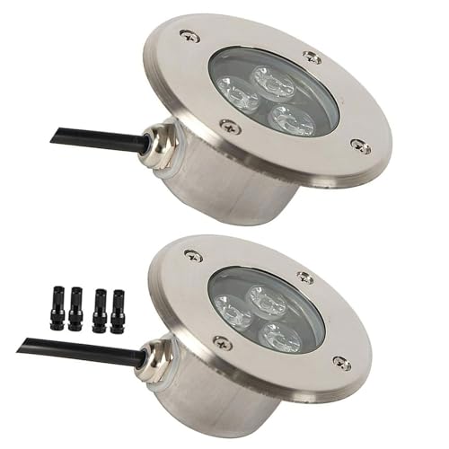 GUODDM Lot De 2 Spots Encastrables Extérieurs Ultra-Fins - Lampe Paysagère LED 3 W, Éclairage De Fontaine LED Étanche IP68 en Acier Inoxydable(White Light,3W(24V))