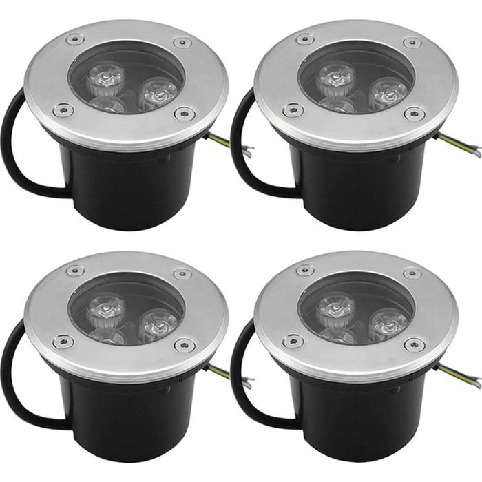Pack de 4 spots LED encastrables extérieurs 3W 270 lm - Blanc chaud IP65 inox 90 mm