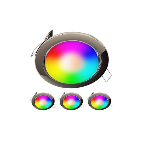 ledscom.de 4 pièces spots encastrés Zobe plat chrome-noir brillant + RGB LED blanc chaud - blanc froid, Smart Home - 107mm Ø trou 90mm Ø