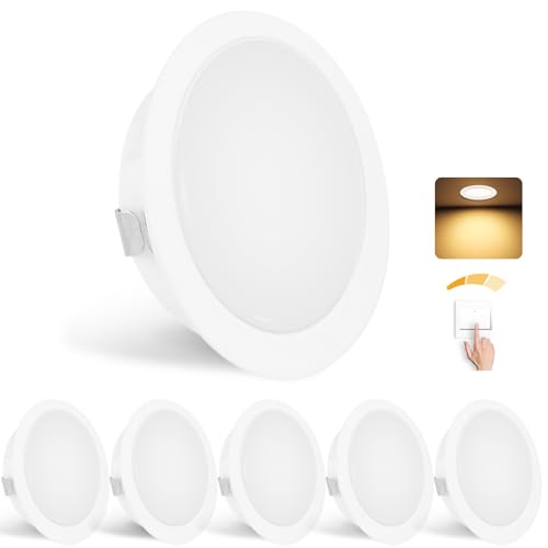 B.K.Licht - Lot de 6 spots LED encastrables 230V avec fonction veilleuse, surfaces et anneaux commutables séparément, fonction mémoire, plat, spots de plafond, lampes encastrées, 68mm, 93x30mm