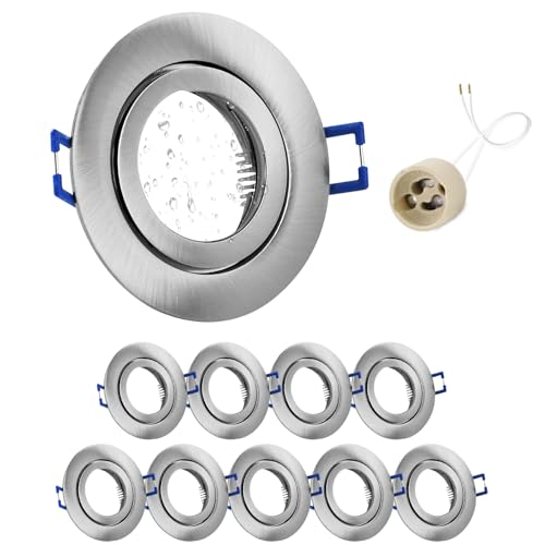 GeyouLux 10x Spot LED Encastrable 230V IP44 Cadre Avec Douille GU10, Spots de plafond en Aluminium Nickel brossé, Rond plat Spots Salle de bain spot cadre d'encastrement 68mm pour extérieur- intérie