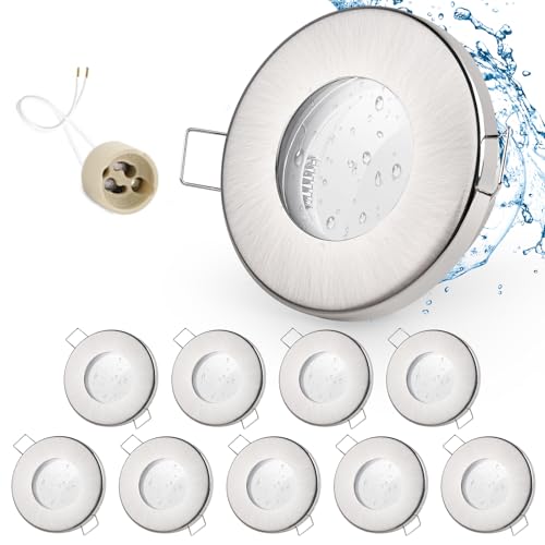 GeyouLux 10x Spot LED Encastrable IP65 Cadre Avec Douille GU10, Spots de plafond en Fer Nickel brossé, Rond plat Spots Salle de bain spot cadre d'encastrement 68mm pour extérieur- intérie