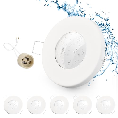 GeyouLux 6x Spot LED Encastrable IP65 Cadre Avec Douille GU10, Spots de plafond en Fer Blanc, Rond plat Spots Salle de bain spot cadre d'encastrement 68mm pour extérieur- intérie