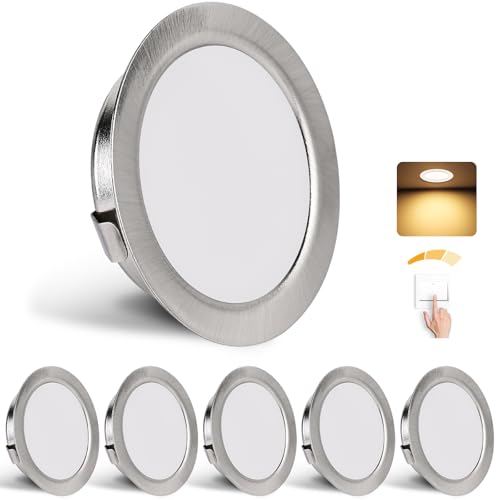 Spot LED Encastrable Dimmable 3W Spot LED 12V Extra Plat Spots de Plafond Blanc Chaud 3000K Blanc Neutre 4000K Blanc Froid 6000K Réglage Tactile Spot Encastrable avec câble de 2m, Lot de 3, Nickel