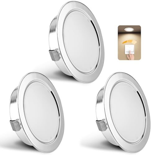 Spot LED Encastrable Dimmable 3W Spot LED 12V Extra Plat Spots de Plafond Blanc Chaud 3000K Blanc Neutre 4000K Blanc Froid 6000K Réglage Tactile Spot Encastrable avec câble de 2m, Lot de 3, Chrome