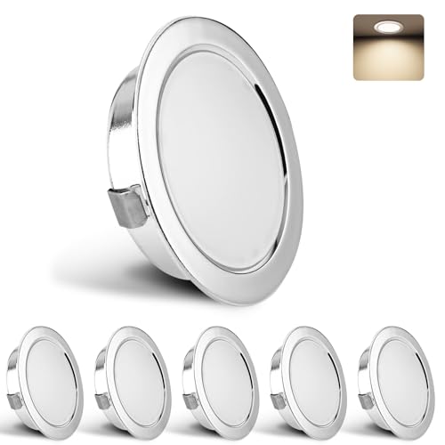 KYOTECH Spot LED Encastrable Dimmable 230V 3W 3000K Blanc Chaud, 15mm Extra Plat Spots de Plafond 300LM Trou 55-58mm, IP44 Spot Salle de Bain, Chrome Lot de 6