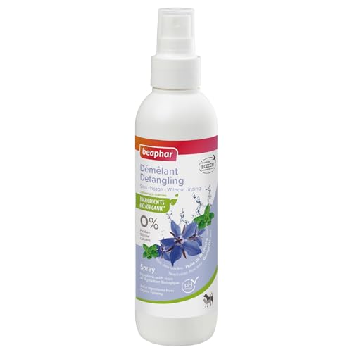 BEAPHAR – Spray Démêlant Labellisé ECOCERT pour Chien et Chat – Contient de l'Aloe Vera, de l'huile de Bourrache et de la Menthe Bio – pH Neutre – sans Parabène/Silicone/Colorant/Alcool – 200 ML