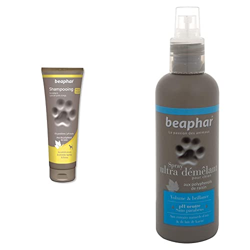BEAPHAR – Shampoing Premium démêlant pour Chien aux Poils Longs – 250 ML & Spray Ultra-démêlant pour Chien – Extraits naturels d'Iris, de Lait de Karité et du polyphenol de Raisin – 200 ML