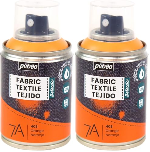 PEBEO - Peinture en Spray pour Textiles 7A Spray - Tissus Naturels et Synthétiques - Base Eau - Sans Solvant - Résistante au Lavage Machine - Peinture sur Tissu Couleur Orange, 100 ml (Lot de 2)