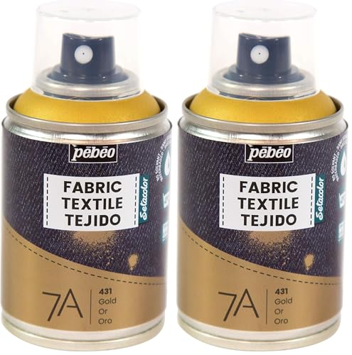 PEBEO - Peinture en Spray pour Textiles 7A Spray - Tissus Naturels et Synthétiques - Base Eau - Sans Solvant - Résistante au Lavage Machine - Peinture sur Tissu Couleur Or, 100 ml (Lot de 2)