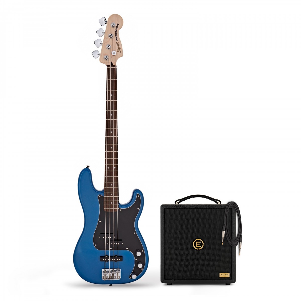 Squier Affinity Precision Bass PJ LRL Lake Placid Blue & Eden Orbiter 8 Bass Combo Amp