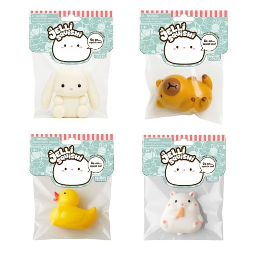 Jelli Squishi – Lot de 4 Squishies Animaux – Jouet Sensoriel Anti-Stress pour Enfants – Squishy Gel Souple à Presser – Style Kawaii Mochi – Couleurs Aléatoires