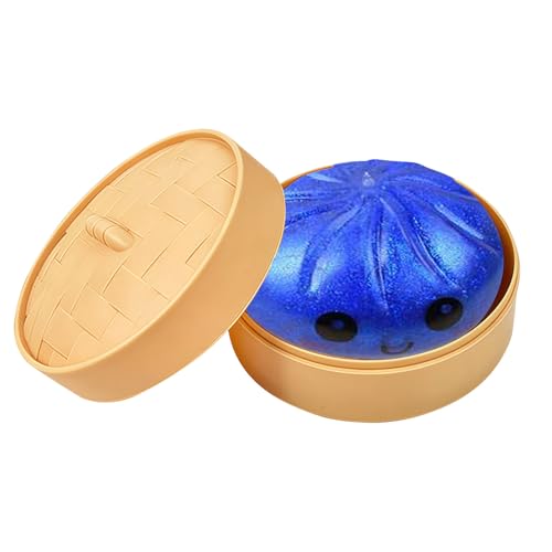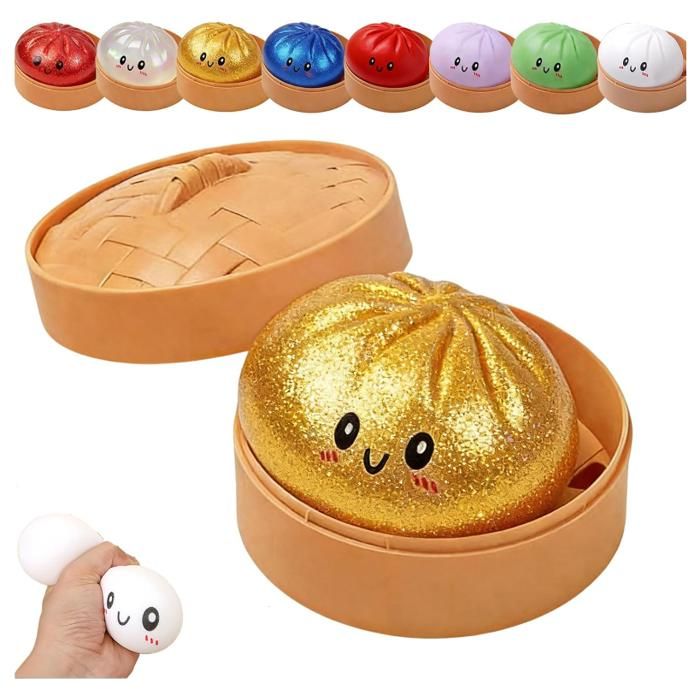 Dumplings Squishy, Glitter Dumpling Squishy Toy with Steamer Box,Cute Glitter Rainbow Dumplings Squishiest avec Visage,Stress & Anxiety Relief Toys Géant Relief Sensory Ball Soft Squeeze Sensory Toys