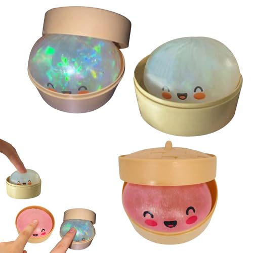 Dumplings Squishy,3PCS Glitter Dumpling Squishy Toy,Cute Dumplings Squishiest with Steamer Box,Stress & Anxiety Relief Toys Géant Relief Sensory Ball Soft Squeeze Sensory Toys Glitter Rainbow Dumpling