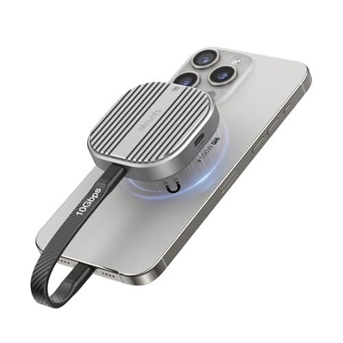 iMounts Boîtier magnétique M.2 SSD NVMe 2230 mm - 10 Gbit/s USB-C 3.2 - Compatible avec MagSafe pour iPhone 15/16 Pro Max ProRes Video - Coque SSD externe en aluminium pour MacBook, iPhone