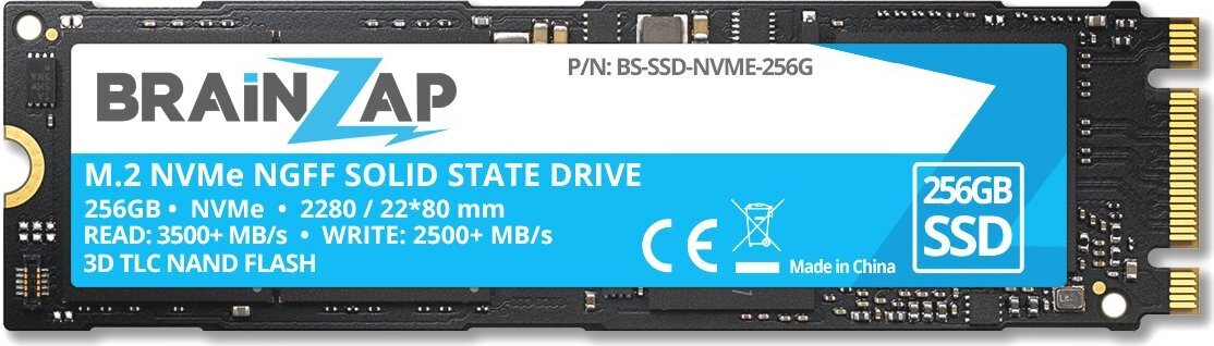 BRAINZAP 256GB NVMe SSD - M.2 NGFF 2280 - PCI-e 3.0 x4 - 3500 MB/s en lecture - 2500 MB/s en écriture - SSD interne