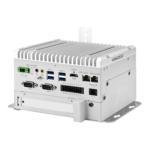 Glovary F1 Industriel Fanless Mini PC J6412 (4C4T, up to 2.6GHz), Micro Ordinateur Din Rail, 16GB RAM 512GB NVMe SSD, 2 x Gigabit LAN, 4 x RS232 COM, 2USB3.2, 2USB2.0, PCIe, 9-36V Auto Power on