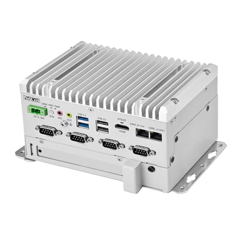 Glovary Fanless Mini PC J6412 (4C4T, up to 2.6GHz), Linux Industrial Computer Din Rail, 8GB RAM 256GB NVMe SSD, 4 x RS232 COM, 2USB3.2, 2USB2.0, PCIe, 9-36V Auto Power on
