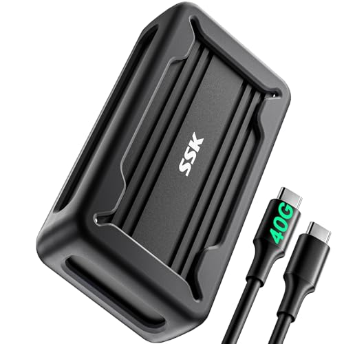 SSK 40 Gbit/s Boîtier SSD M.2 NVMe, Caddie USB 4 NVMe USB C pour Thunderbolt 3/4, Boîtier Externe M2 Prenant en Charge Les SSD 2280/2260/2242/2230, clé M avec indicateur LED, Aluminium