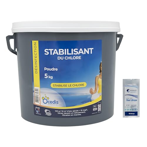 OCEDIS STABILISANT du Chlore Poudre - 5kg | Stabilisant - Stabilisateur du Chlore + 10 Tests HPS OFFERTS 6 en 1