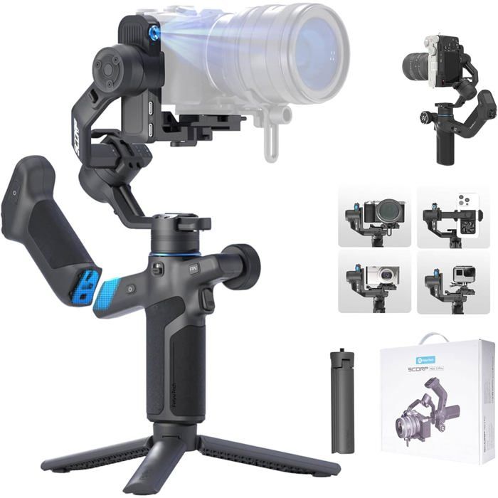 FeiyuTech SCORP Mini 3 Pro Kit stabilisateur de caméra à 3 axes, IA intégrée, portable tout-en-un pour appareil photo sans miroir, caméra d'action, téléphone, charge utile 2 kg