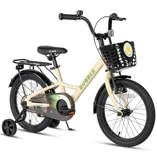 Glerc Bubble vélo 14 Pouces pour garçons et Filles de 3 4 5 6 Ans avec Panier stabilisateur et Porte-Bagages, Beige